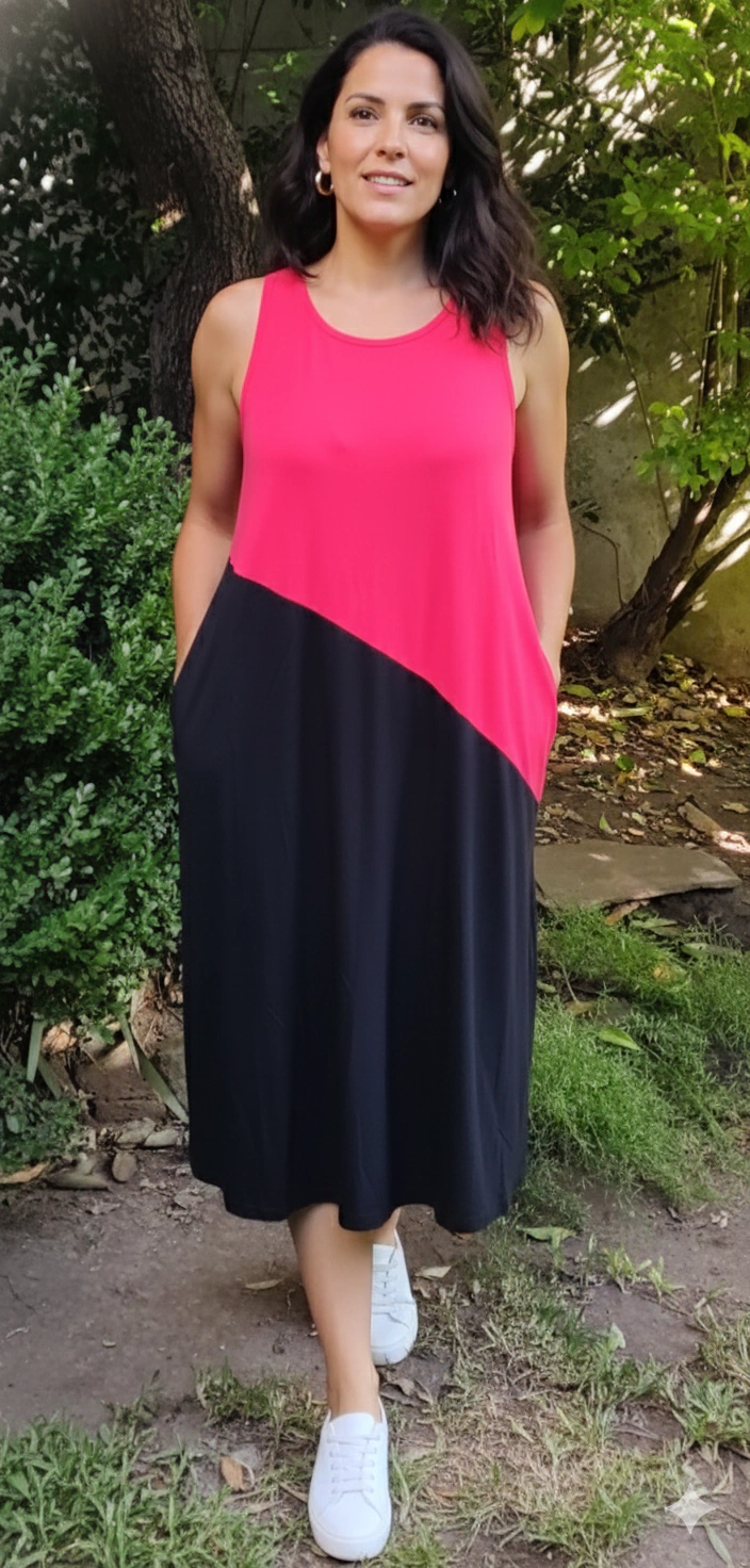¡Descubrí nuestro Vestido Sin Mangas Combinado con Bolsillos! Este elegante vestido destaca por su espalda toda negra, que le aporta un toque sofisticado. Confeccionado en una suave tela, es perfecto para cualquier ocasión, ya sea un evento especial o un día casual.